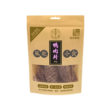 風乾鴨肉片 80g(貓狗適用):低脂高蛋白,適合腸胃敏感或需要控重的毛孩。