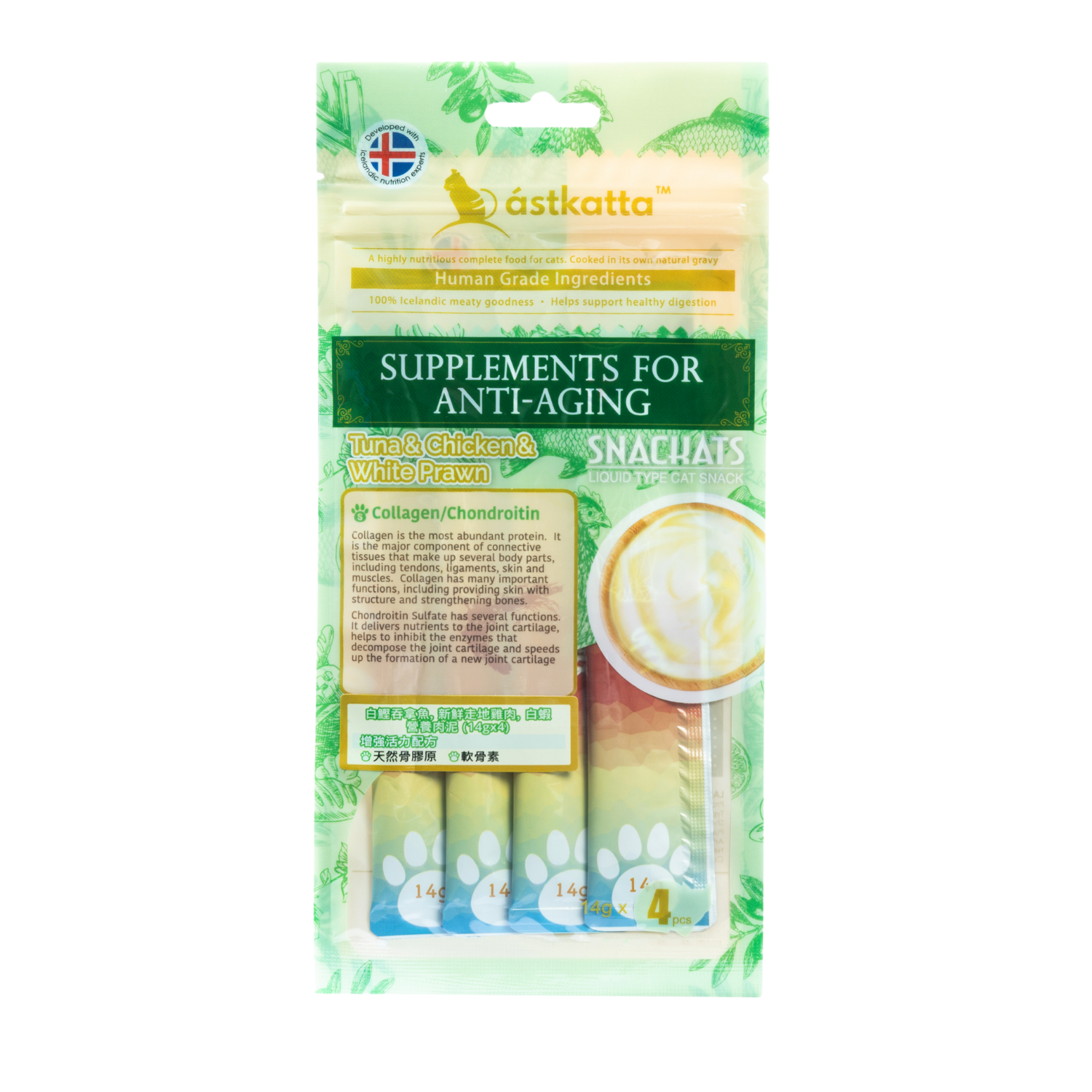 Astkatta 白鰹吞拿魚+雞肉+白蝦增強活力肉泥(14g x 4支)