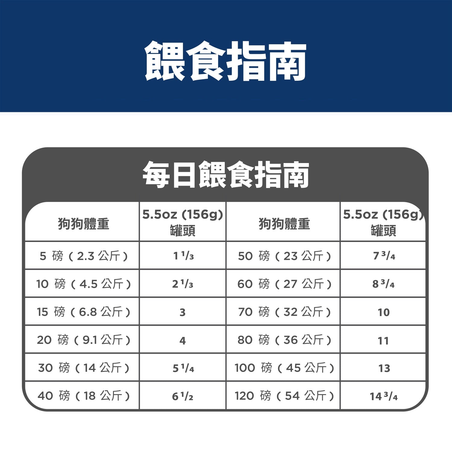 - 狗狗體重5磅(2.3公斤):5/8 罐 / 每日份量
