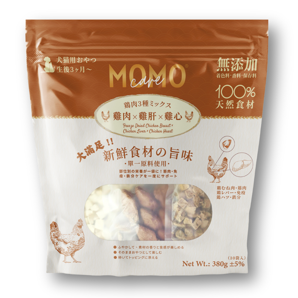 MomoCare 凍乾雞胸肉雞肝雞心小食 380g(貓狗適用)