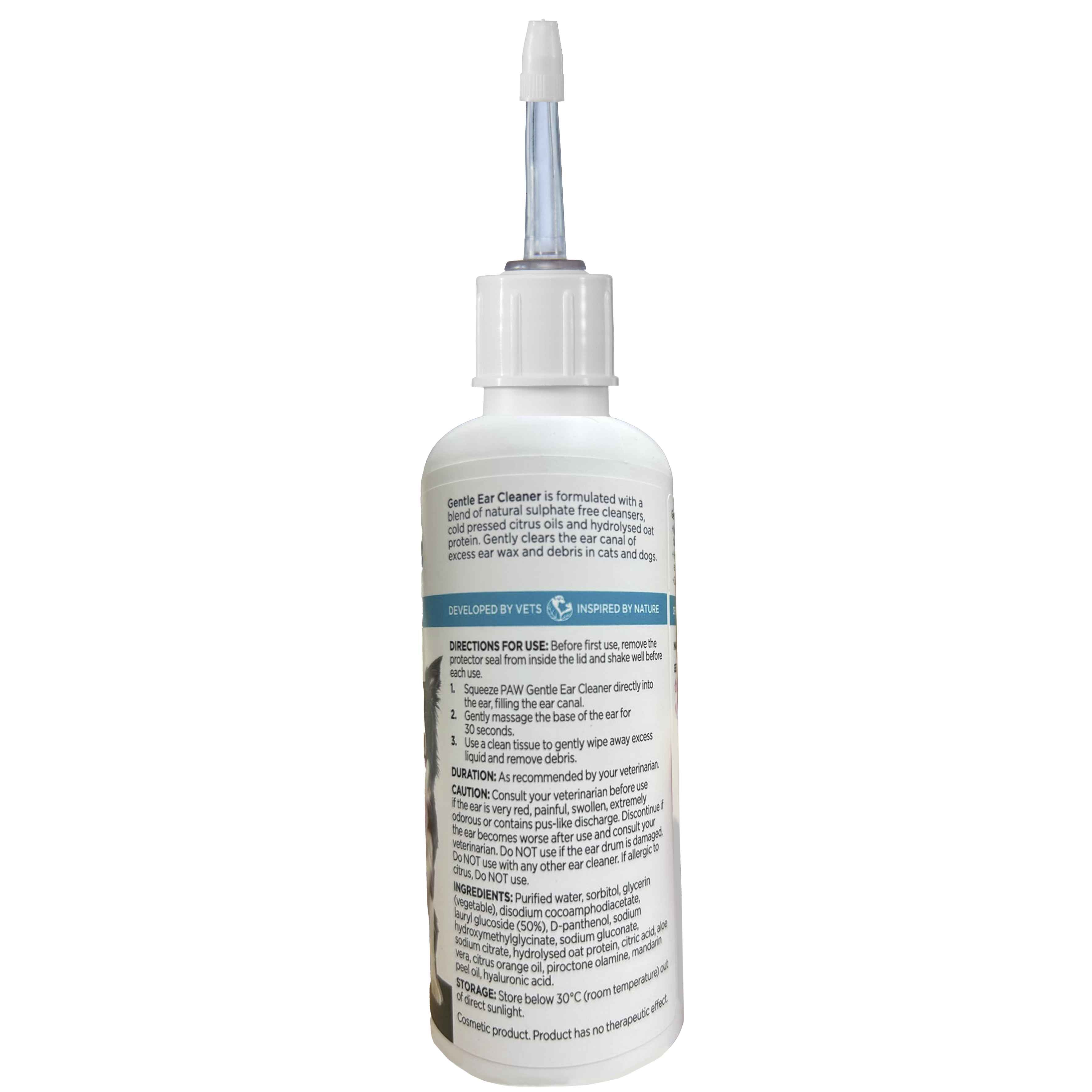 PAW 溫和耳部清潔劑採用天然無硫酸鹽清潔劑、冷壓柑橘油和水解燕麥蛋白混合配方,溫和清潔貓狗耳道中多餘的耳垢,同時避免刺激。