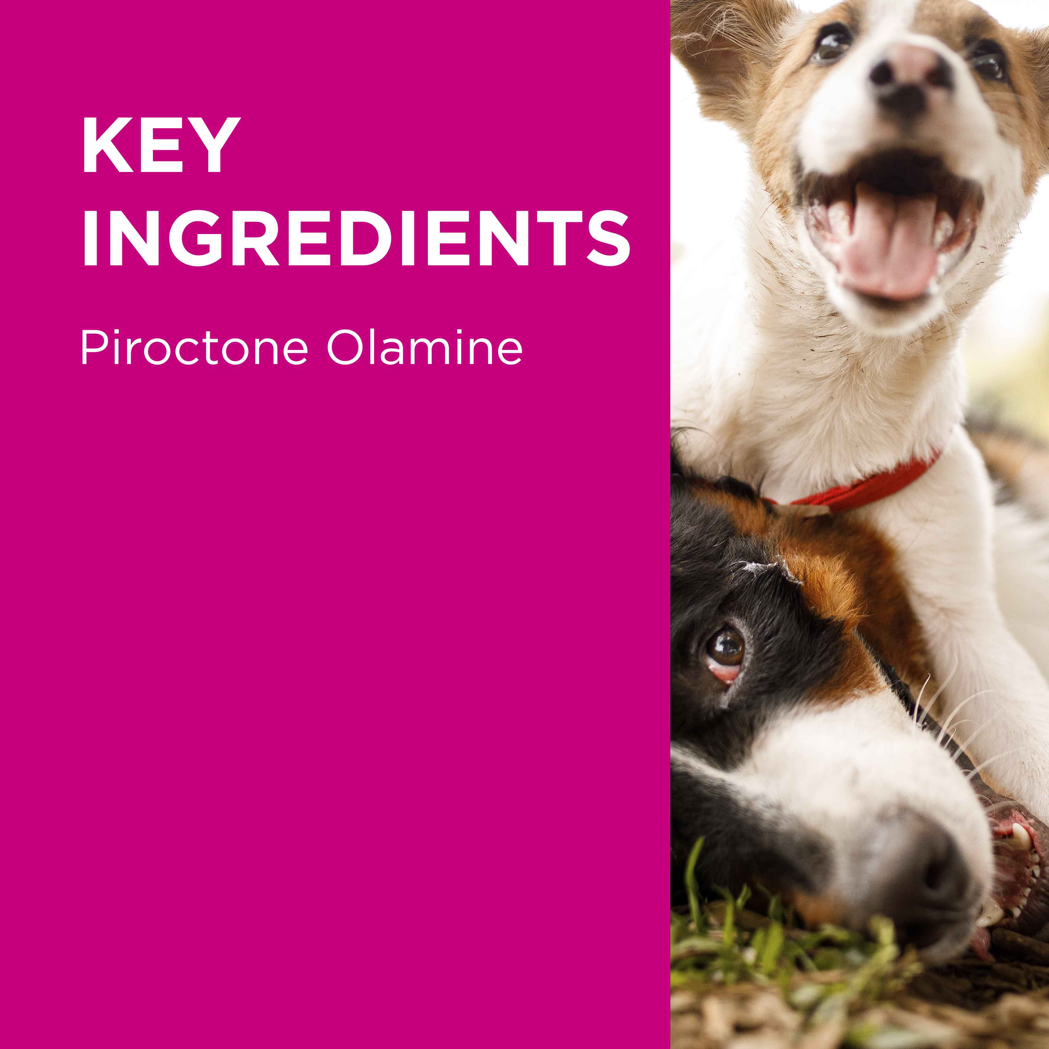 PAW MediDerm® 是一種低刺激性洗髮精,採用溫和有效的活性成分(包括吡羅克酮乙醇胺)配製而成,有助於治療犬類皮膚感染,去除鱗屑和油脂。