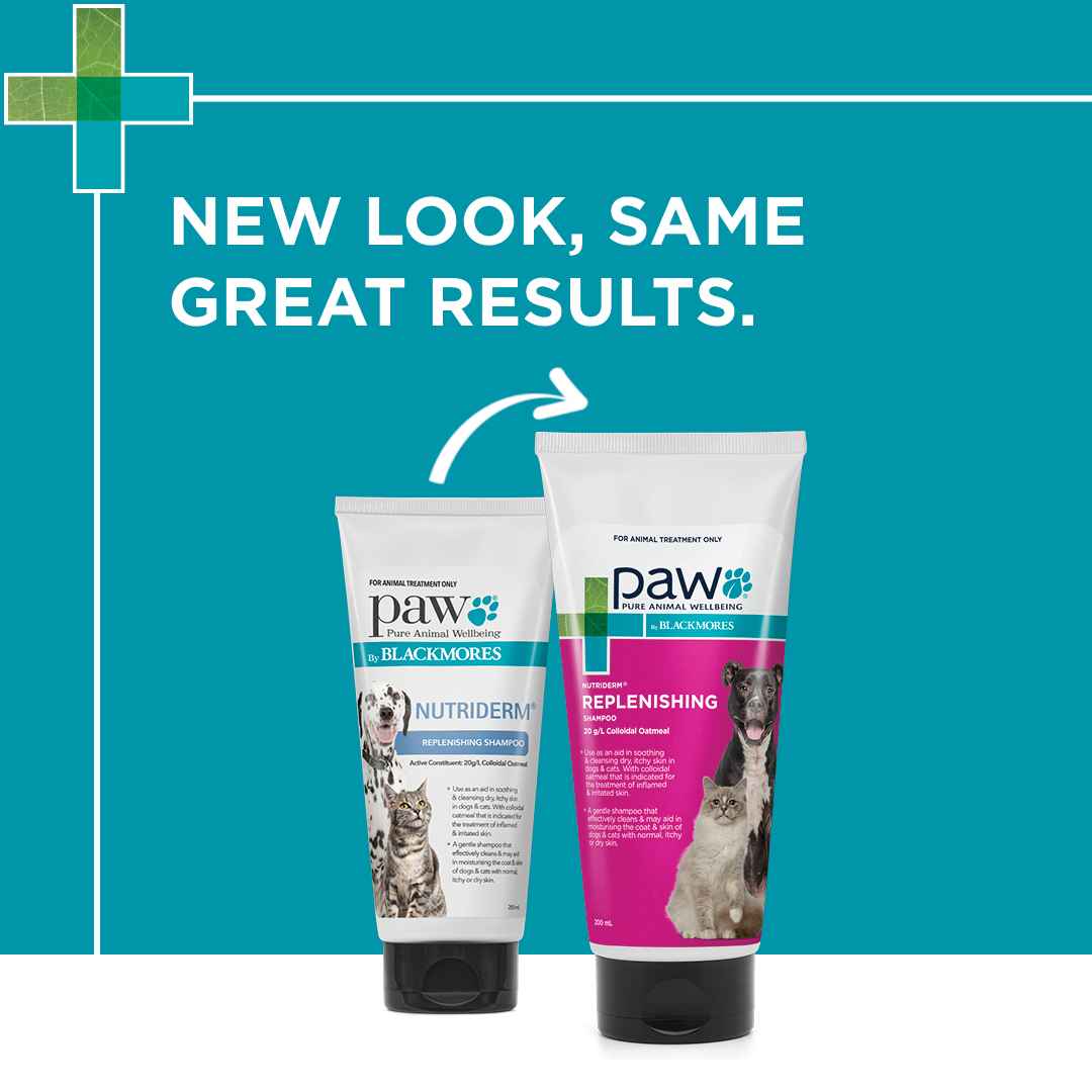 PAW NutriDerm® 煥膚洗髮精可有效舒緩、清潔並緩解犬貓正常、乾燥和搔癢皮膚的症狀。