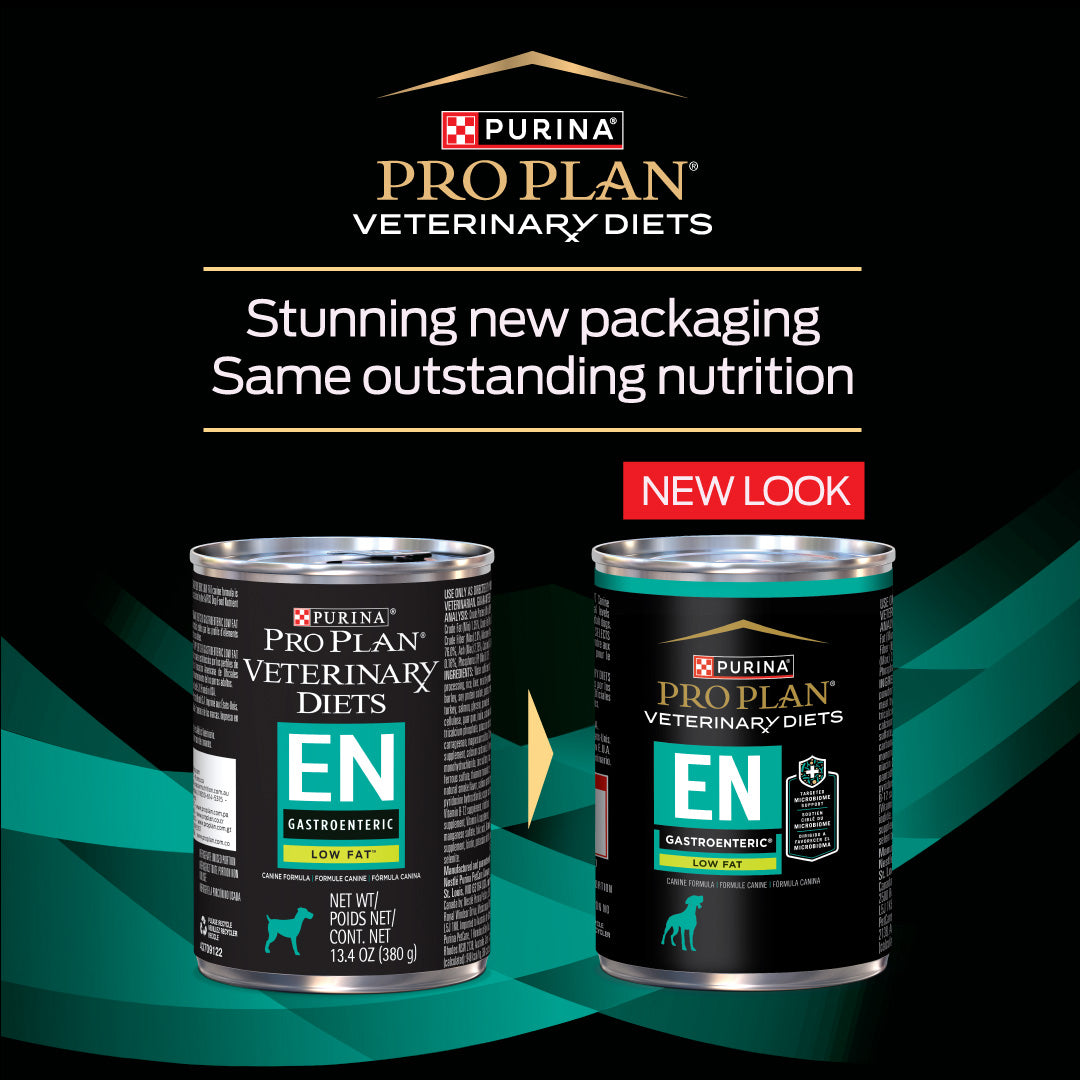 Purina Pro Plan Veterinary Diets EN Gastroenteric Low Fat Canine 配方為易於消化的犬隻專用配方,採用高品質原料製成,並添加益生元纖維,有助促進腸道健康。