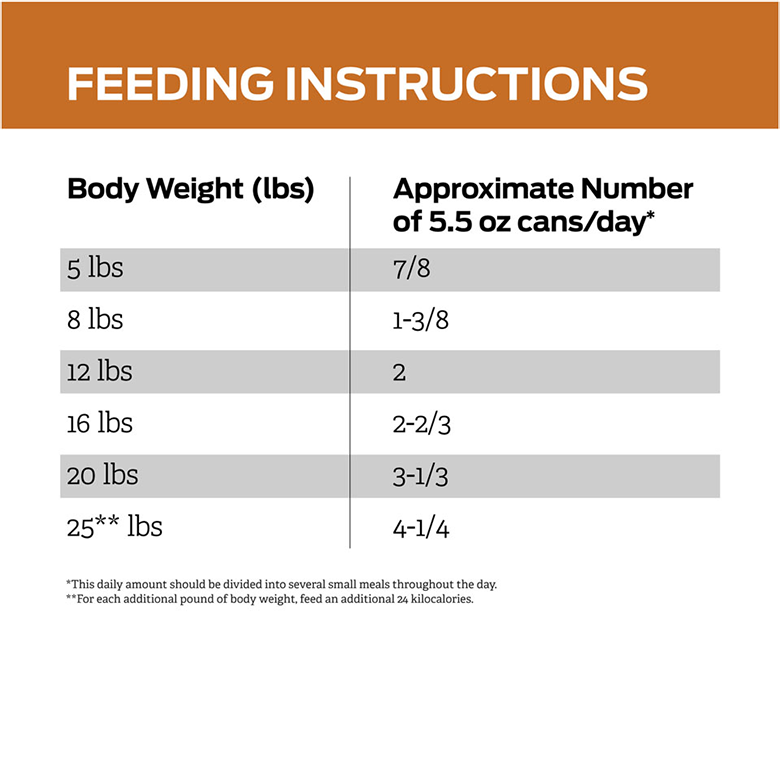 以下餵食建議僅供參考,實際份量應依照體重維持狀況,由獸醫按臨床情況作調整。