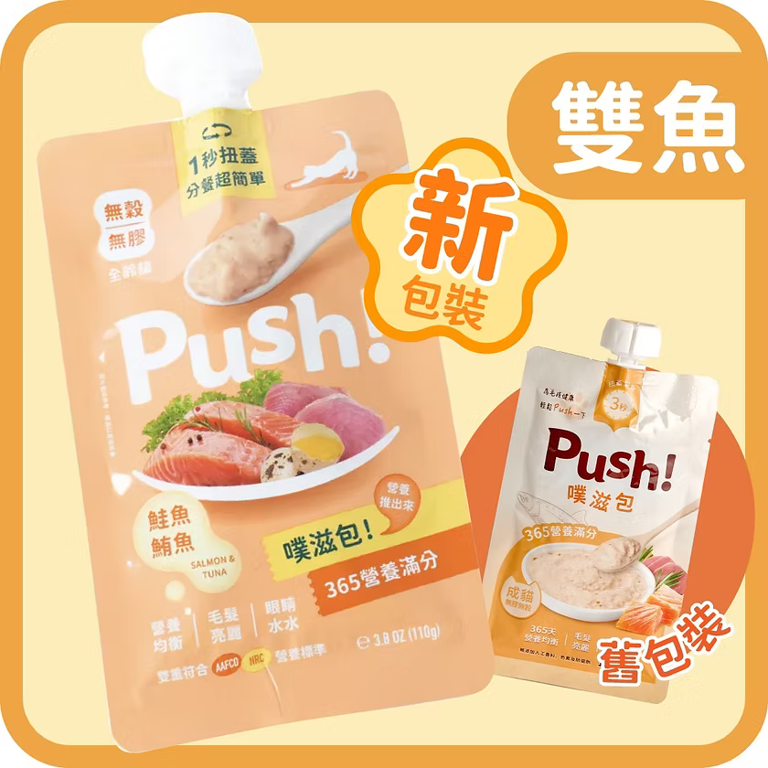 Push! 噗滋包 - 三文魚+吞拿魚(365 營養滿分)貓咪主食肉泥 唧唧包 台灣製 110g