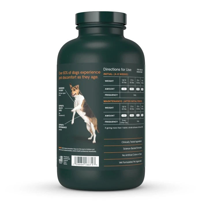 這是一款專為狗隻設計的髖關節與關節補充劑,配方包含葡萄糖胺、MSM(甲基磺酰甲烷)及青口貽貝,有助於支援關節健康和靈活性。