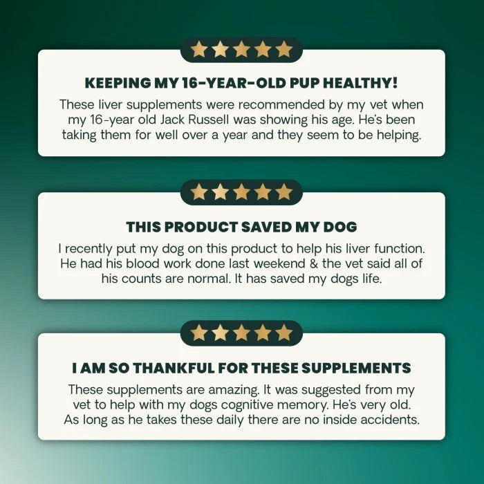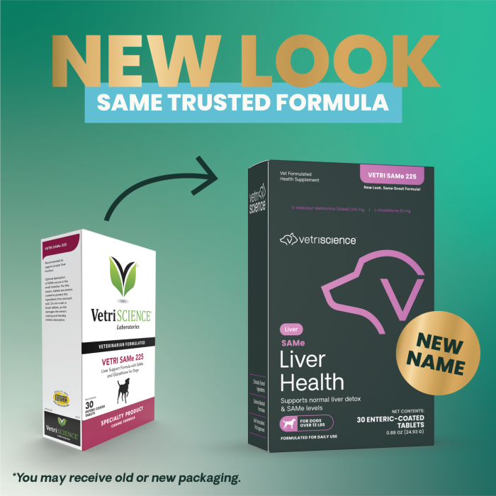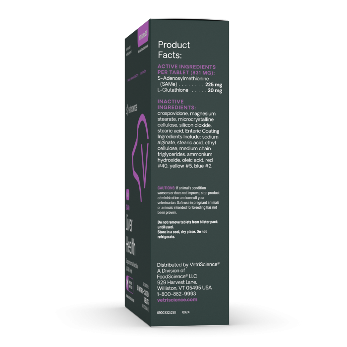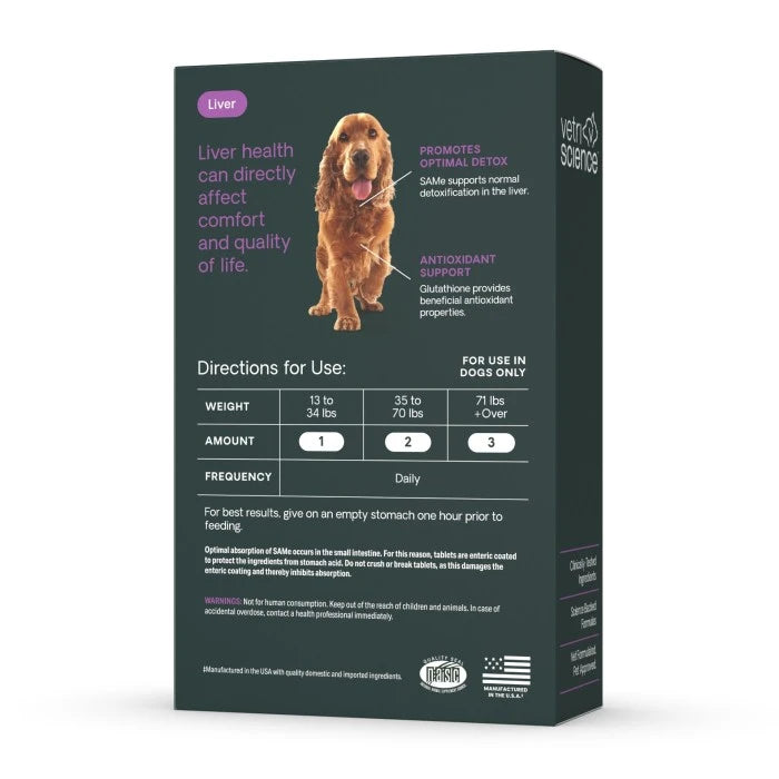 - 專為狗隻配方的肝臟補充劑,由獸醫研製,含SAMe及穀胱甘肽,提供強效肝臟支援,促進正常解毒及肝功能。