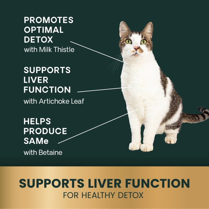 - Vetri Liver Feline 是一款專為貓隻設計的肝臟支援補充劑,含有乳薊草,幫助促進肝臟健康及正常解毒功能。