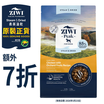 [額外 7 折 - 到期日 05/2026 ] Ziwi Peak 柔蒸溫乾狗糧(放養雞配果園水果食譜) 1.5KG